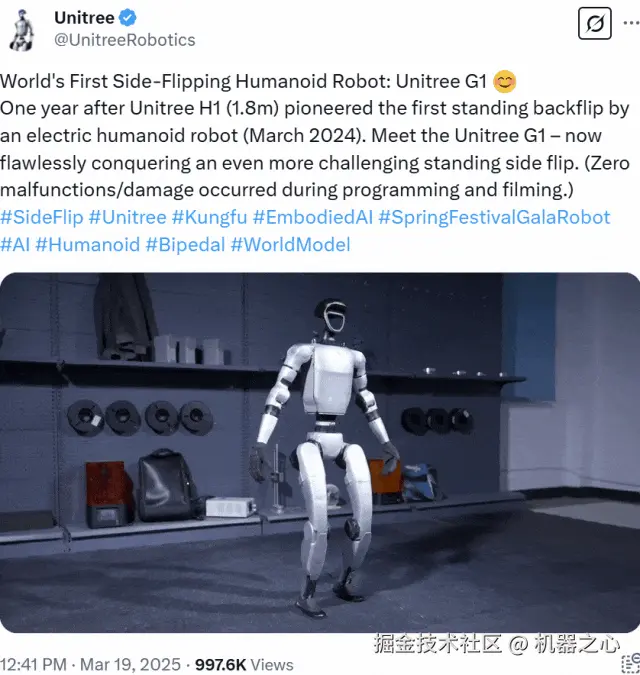 昨天,宇树机器人发布了一段视频,宣布首次让人形机器人实现了侧空翻,吸睛无数。