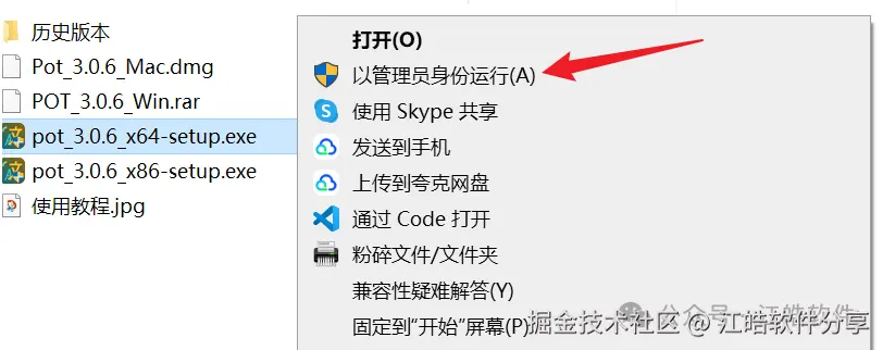 2.进入解压目录,根据操作系统位数(通常为64位)选择对应安装程序,右键选择【以管理员身份运行】。