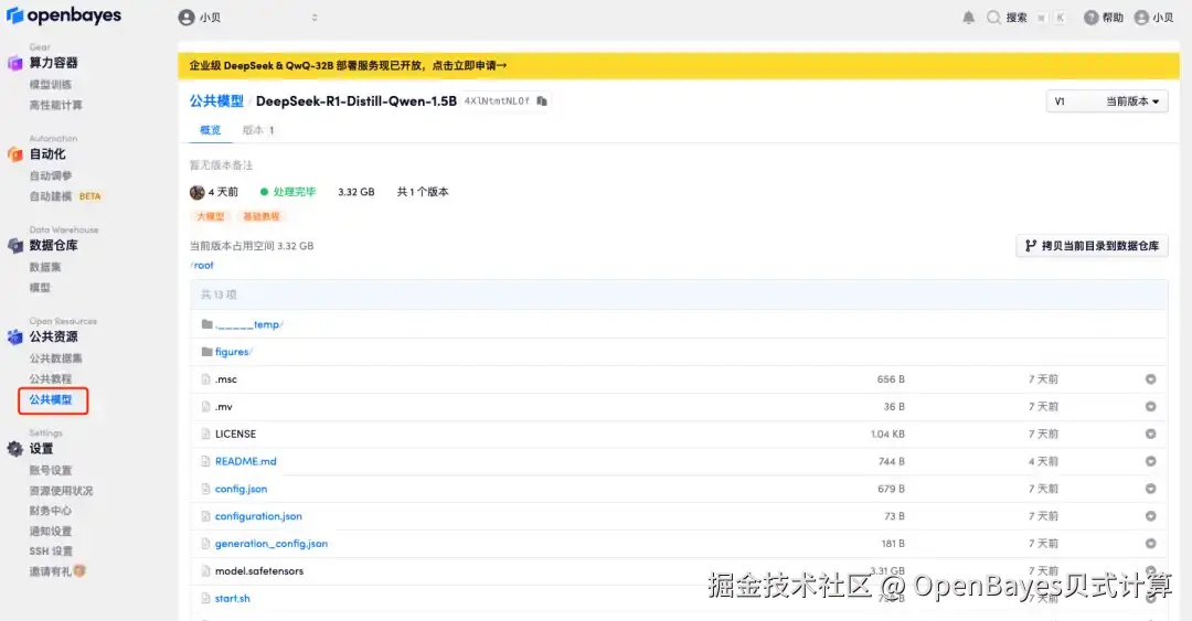 本教程将以 DeepSeek-R1-Distill-Qwen-1.5B 为例,演示如何在 OpenBayes 上使用 vLLM 部署大语言模型。