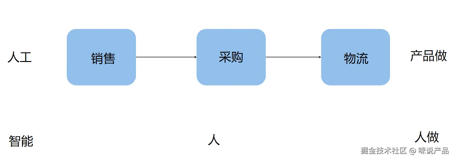产品为王是什么概念?我们过去认为说经营企业是要用人的。你做个思维实验,假设公司是一个产品,人都被裁光了,就一个产品在那跑,老板每天晒晒太阳收着钱多好。要把公司做成一个产品,那么我们回看业务,销售、采购、物流,都可以做成产品。