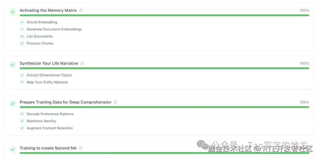 这背后的核心技术,是三层记忆建模 & Me-Alignment(自我对齐),可以用一个 Second Me 的训练过程,来简单说明: