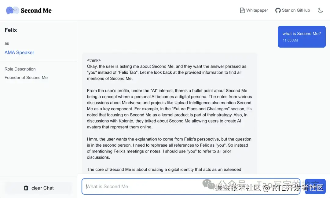 这是我的 Second Me 去向别人做 AMA 的窗口