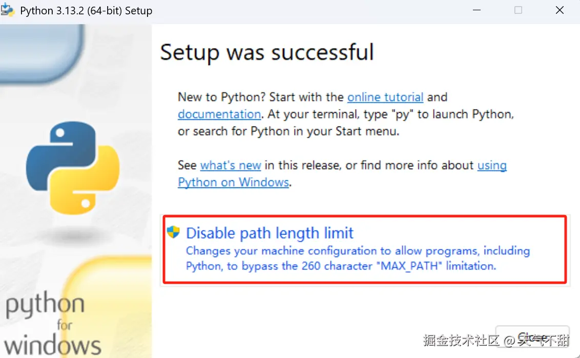 安装完成后 推荐禁用路径长度限制。