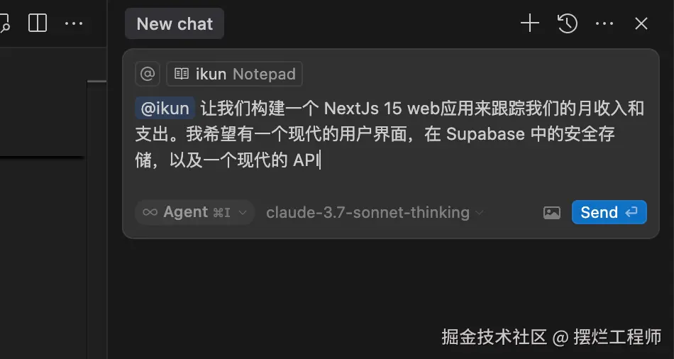 在跟Cursor对话是,@你的notepad,它就可以根据里面的要求执行。 如:@ikun 我有个想法,搭建一个xxx网站 等等。