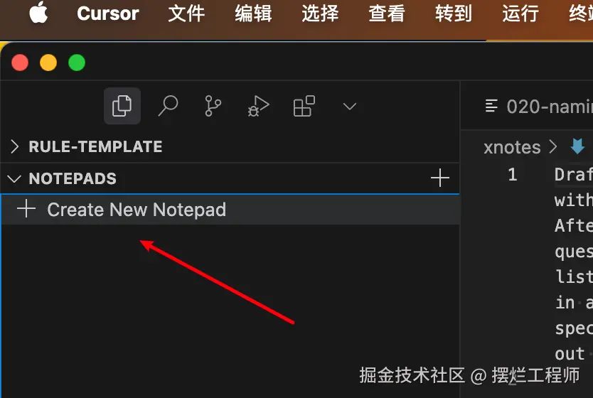 首先在cursor编辑器的 NOTEPADS 创建一个 Notepad