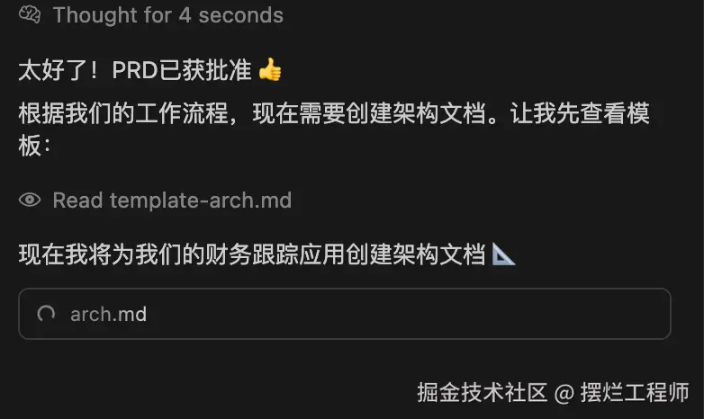 然后一步一步,生成对应的流程,prd -> arch -> story。