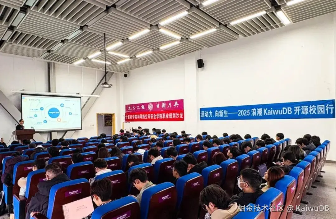 3月14日,“源动力,向新生——2025 浪潮 KaiwuDB 开源校园行”活动顺利落地南开大学津南校区,百余名师生到场参与,反响热烈。
