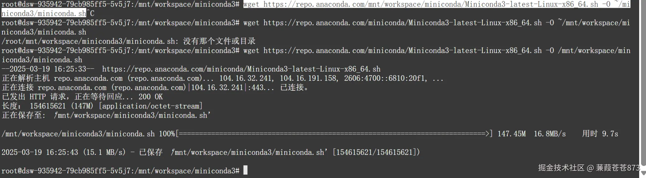 wget repo.anaconda.com/miniconda/M… -O /mnt/workspace/miniconda3/miniconda.sh