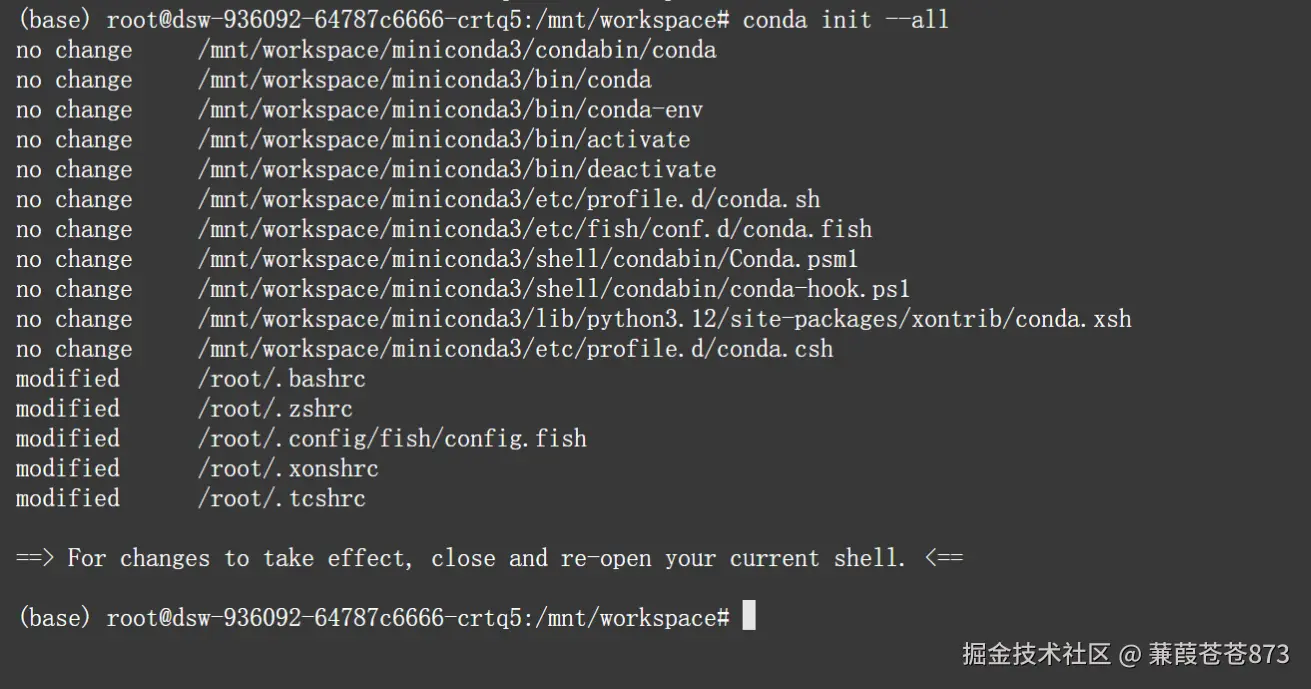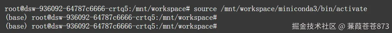 其他目录:source /mnt/workspace/miniconda3/bin/activate