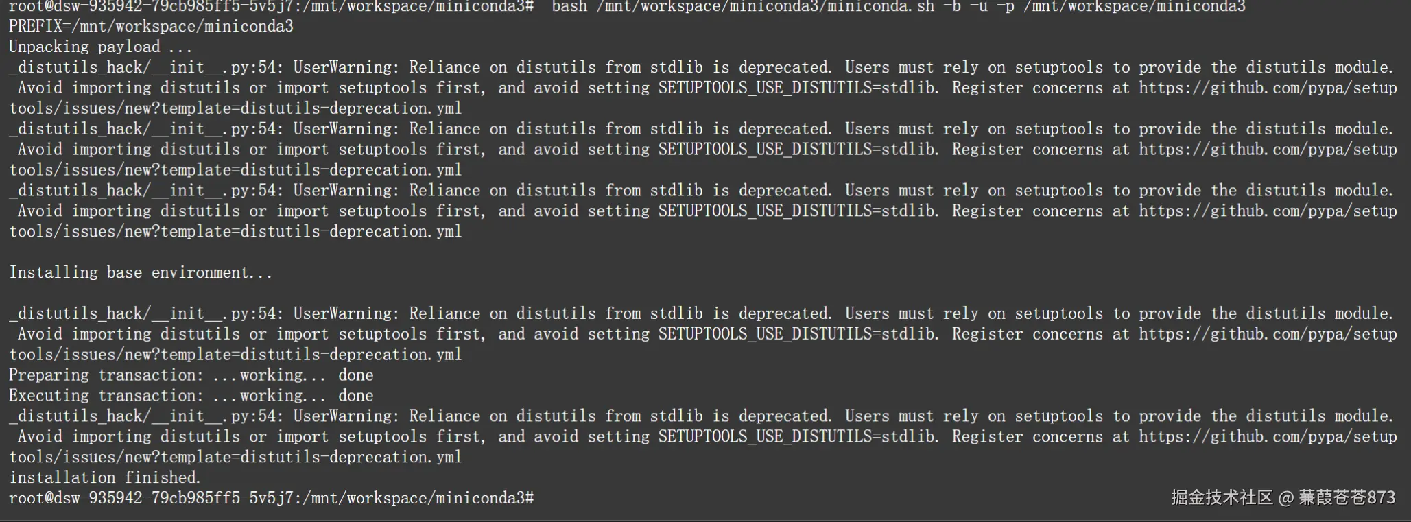 其他目录:bash /mnt/workspace/miniconda3/miniconda.sh -b -u -p /mnt/workspace/miniconda3