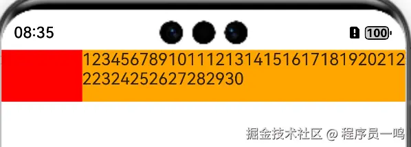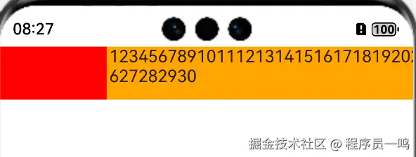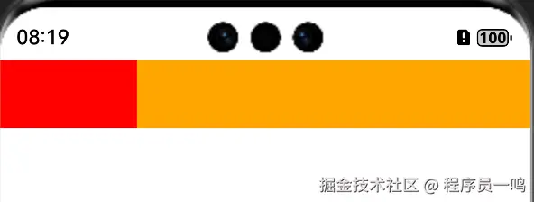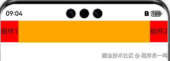 肯定有的人都会想起,给后一个组件设置宽度为100%,不就可以了吗?来,我们验证一下,例举一个很简单的案例,使用Row组件,设置两个测试组件,前一个组件宽度为100,后一个宽度设置为100%。