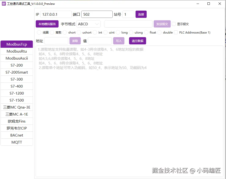 校验方法:包括LRC、XOR、CheckSum、FCS、Modbus-CRC16等。