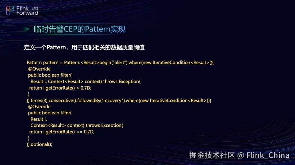接下来,简单介绍一下 Pattern 告警的实现。实际上,它只需要几行代码就可以完成。