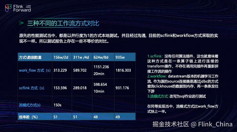 流模式是一种数据处理方式,它类似于 Window TVF(Time-based Value Function),其总耗时可以通过简单的工作流说明。Sc Flink 相当于编写了一个固定的工作流,将所有算子嵌入其中,形成一个非常基础的工作流。因此,流模式本质上与 Workflow 等价。