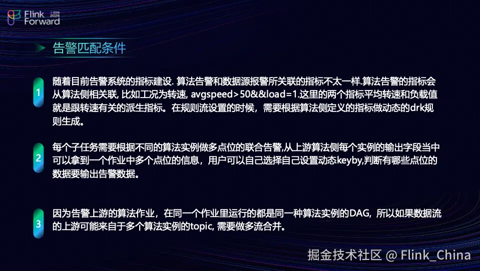 第二点,团队的每个子任务需要根据不同的算法实例进行多点位的联合告警。具体来说,尽管团队点位一和点位二属于同类型,但团队需要从这些点位中获取一些训练数据,类似于样本拼接,以获取作业中多个点位的信息。用户可以自行动态设置 Key By,以判断哪些点位需要输出告警数据。