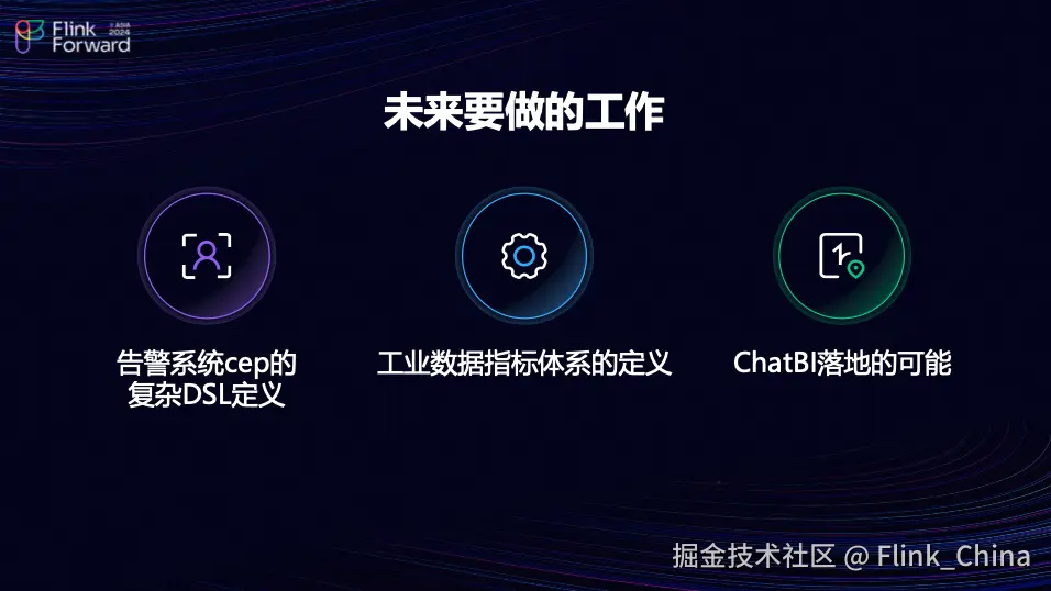 在探讨未来与展望时,团队计划执行三项主要任务。首先,当前的 CEP模式可能并不完全符合团队的系统定义。鉴于团队的目标是从复杂的内部波栏式结构中解析出告警规则,并进行计算后推送到下游,