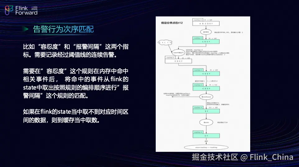 团队会设计一个行为次序匹配的规则,类似于 Flink State 的二级缓存方式,先在 State 中尝试,若未命中,则在 Redis中查找相关缓存结果。