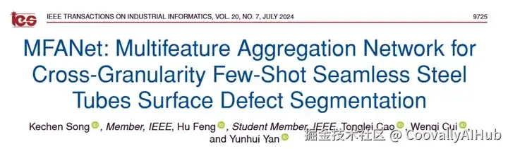 论文题目:MFANet: Multifeature Aggregation Network for Cross-Granularity Few-Shot Seamless Steel Tubes Surface Defect Segmentation