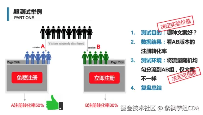 AB测试是互联网行业在流量红利消退背景下实现精细化运营的核心工具。并且AB测试进阶为数据分析人员关键技能,以前Excel为主力,SQL为加分项;现在SQL成为基础,AB测试进阶为关键能力。