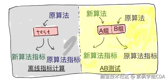 通过分流对比算法模型效果。工程师开发了两种算法,同步上线对比:A组用旧算法,B组用新算法,看哪个能让用户刷得更久、点得更多。