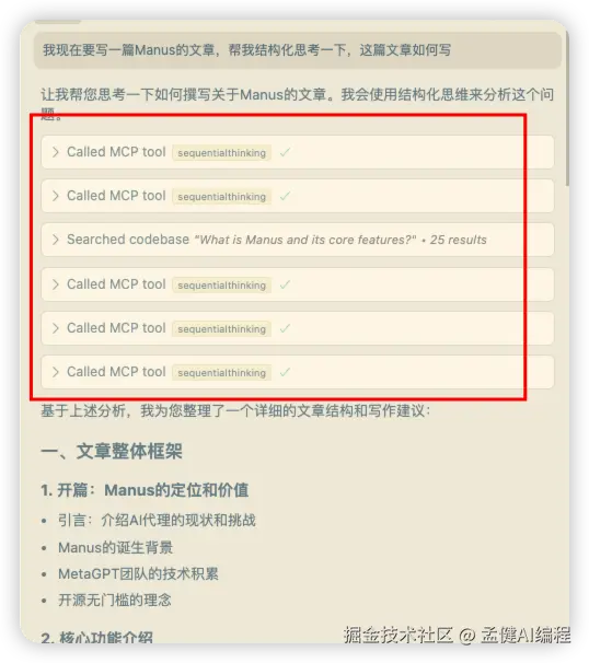 实际上Sequential thinking相当于是深度思考的能力,它可以实现类似Manus的自主规划和执行复杂任务的能力。