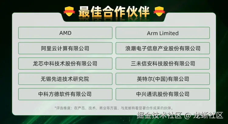 龙蜥社区目前已有超 1000 家来自芯片厂商、整机厂商、操作系统厂商等覆盖操作系统全产业链的合作伙伴参与生态共建,龙蜥生态已进入下一个发展里程碑。本次获奖单位是基于企业在龙蜥社区参与产品、技术、商业、运营等多维度贡献的成果,并结合龙蜥贡献平台实际贡献情况选出的,经龙蜥社区运营委员会和龙蜥社区技术委员会评审,理事会公示后发布。恭喜这些优秀的龙蜥合作伙伴!