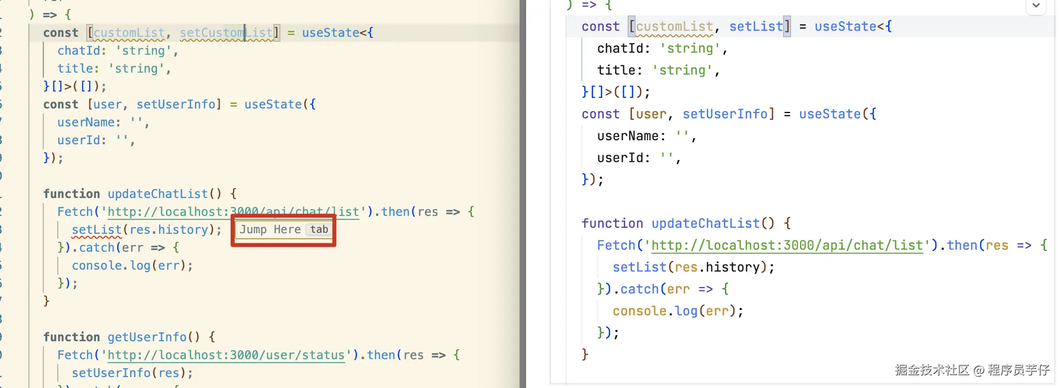 代码中,我们修改变量名之后的意图,往往就是修改本文件中的所有相关变量名。对于 react,如果我们修改了一个 state,我们往往还会希望能够修改对应的 setState 名称。