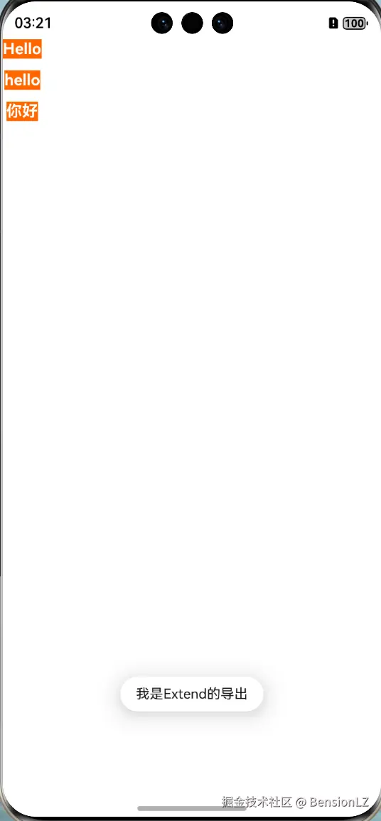 .onClick(() => { promptAction.showToast({message: "我是Extend的导出" }) })