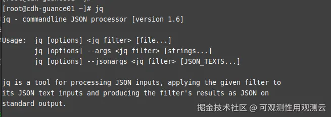 下载完成后,需要将 jq 放到 /usr/bin 下面,然后执行 jq 命令。
