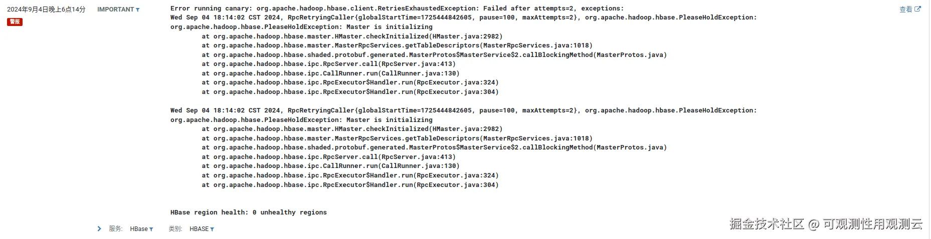 可以主动在主机上 kill 一个进程,比如 HBase、Zookeeper、DataNode、NameNode 等,会触发告警,如下: