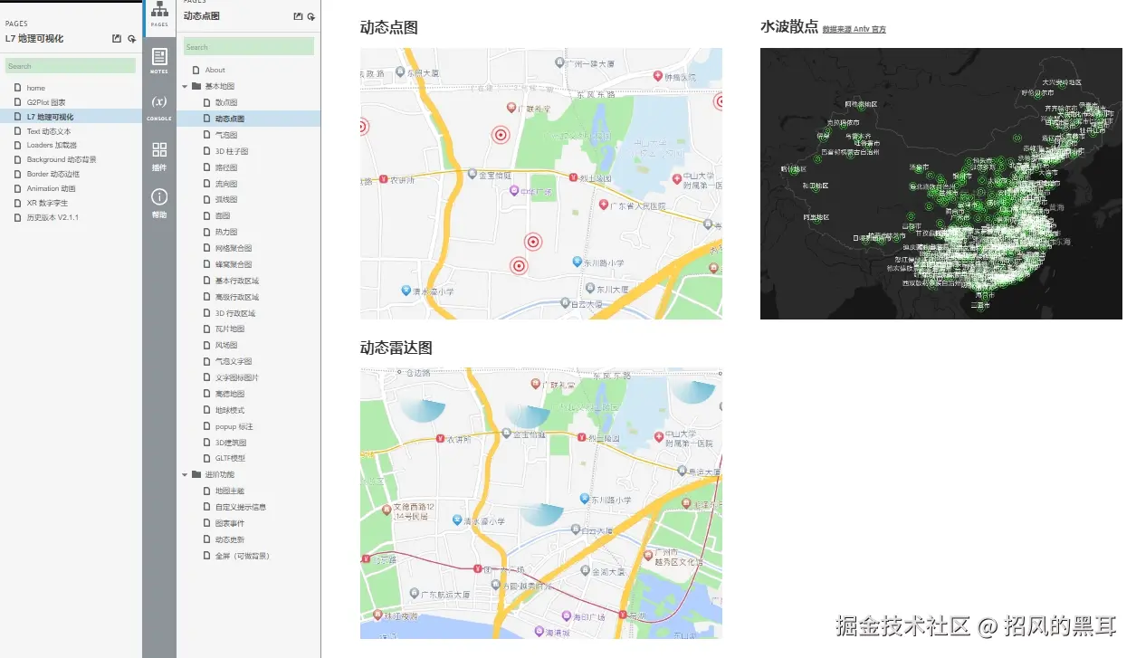 | L7 地理可视化 | 多图层叠加/省市县三级下钻 | 智慧城市/物流监控 |