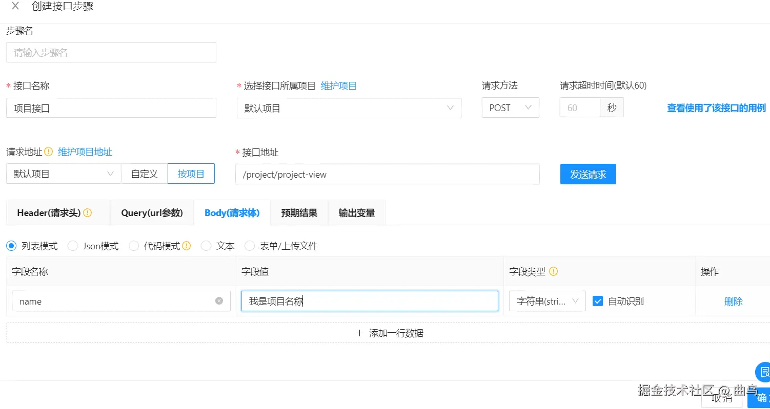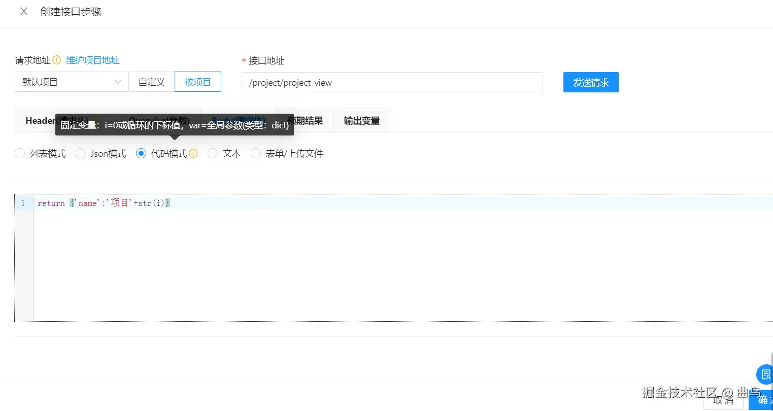 假设我们有一个创建项目的接口 (地址为:/project/project-view) ,现在我们想造1000条项目名称不重复的数据。