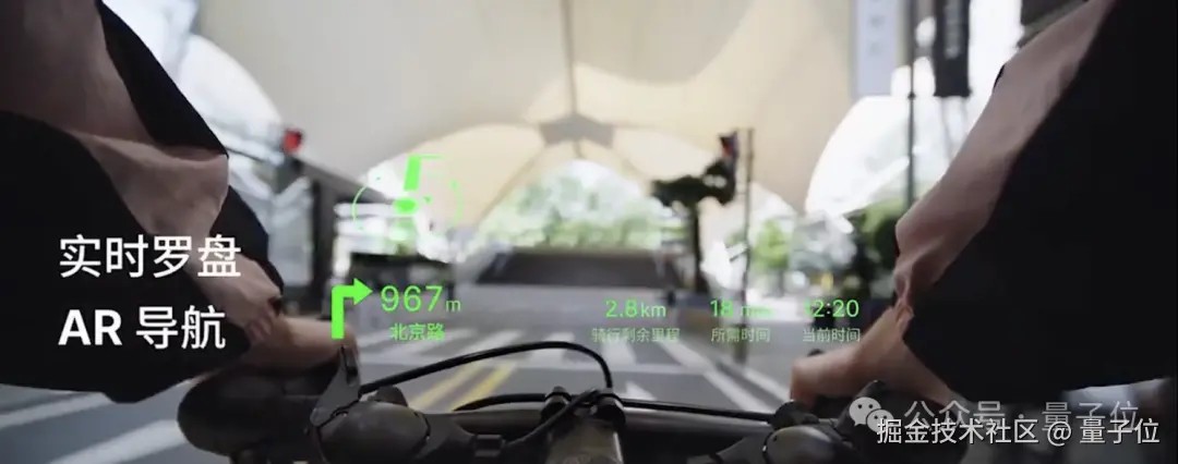 将实时路况投射在眼镜上,显示剩余里程和方向切换,支持骑行、步行和驾车三种模式。