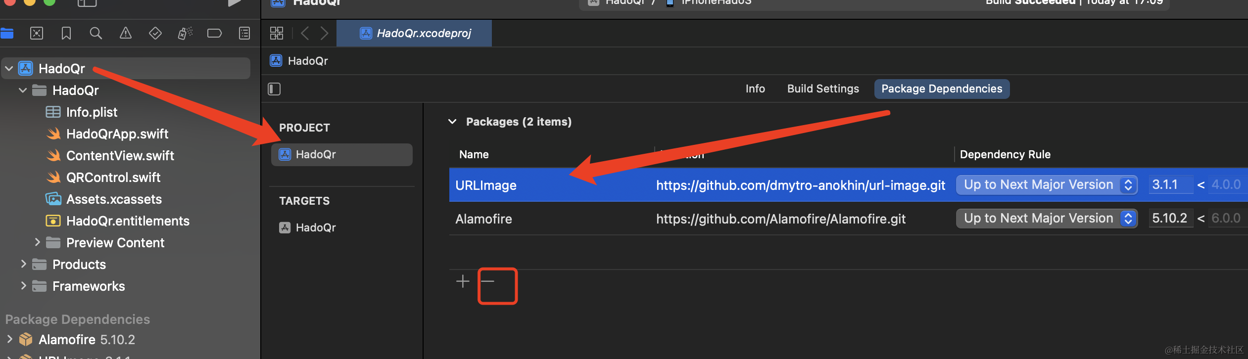 xcode中移除安装的package dependency 1024小神 2025-03-21 178 阅读1分钟 有的依赖包安装之后,没有用,所以就需要把这个依赖项去掉,找了好久没有找到在哪里,最后发现在项目详情里面: 选中这一项,然后删除就可以了