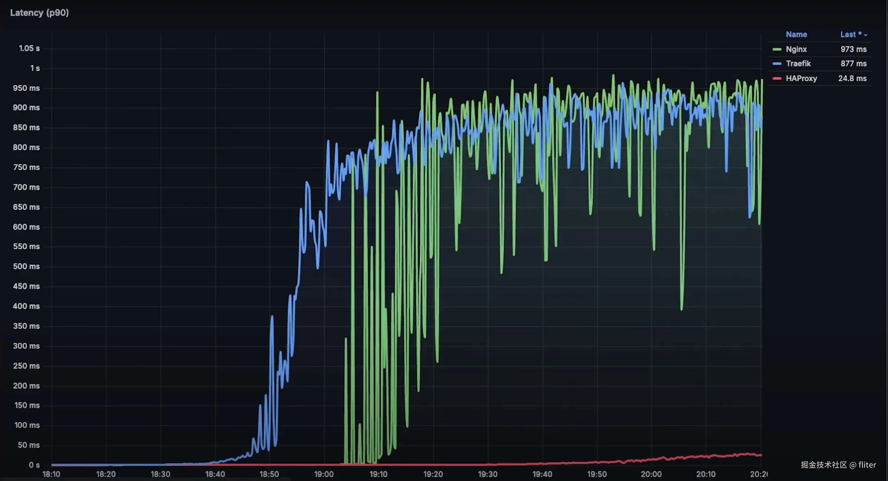在 延迟测试 中,HAProxy 再次优于其他代理服务器。