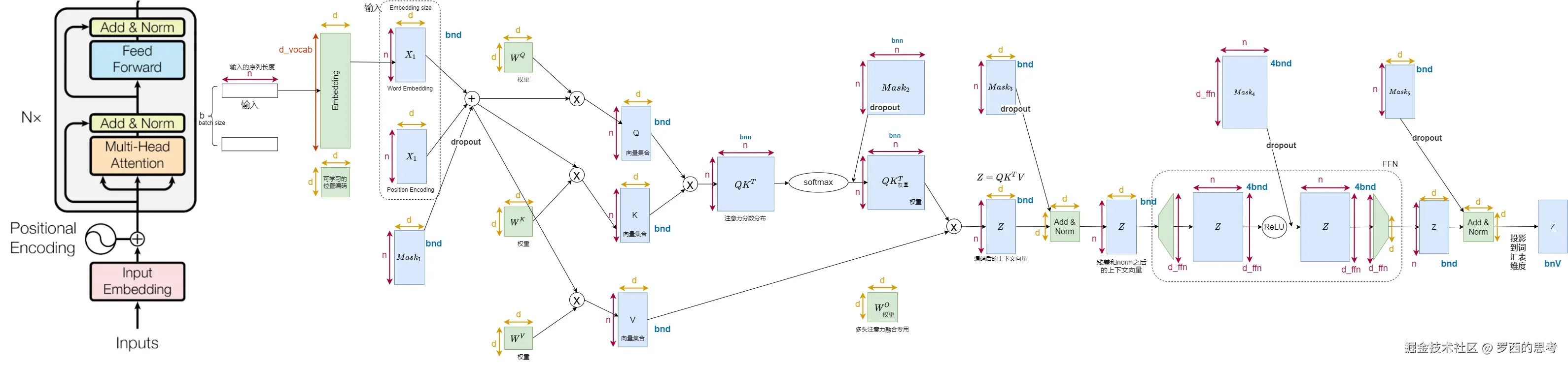 - 自注意力(Self-Attention,黄色标出)涉及矩阵-矩阵乘法。