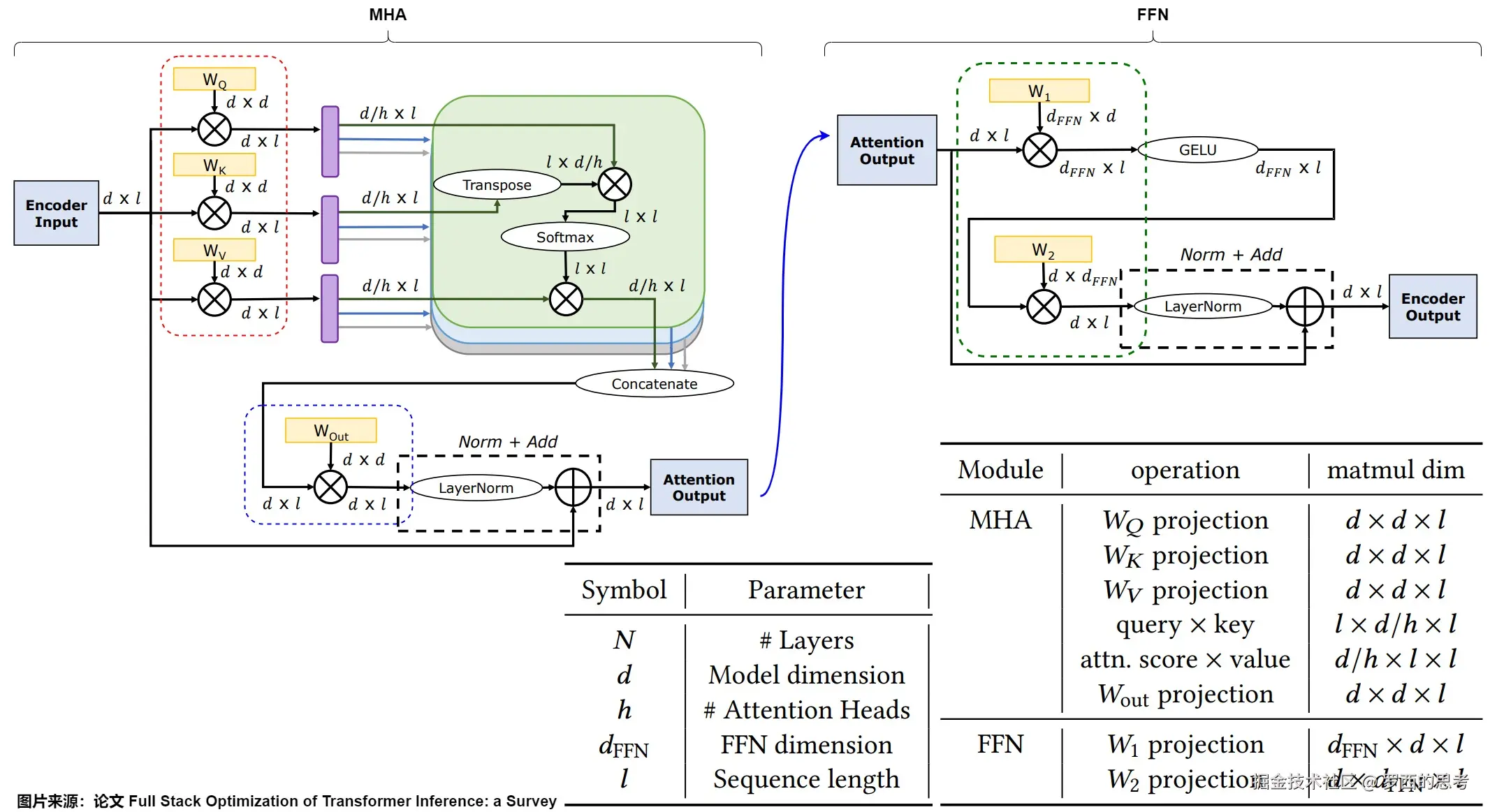 - 密集投影(Dense Projection,绿色标出)涉及向量-矩阵乘法。
