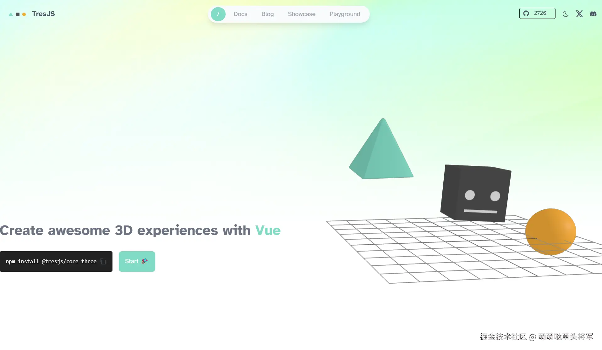 React Three Fiber 是 React 生态中用于构建 3D 场景的库,基于 Three.js 封装,提供了声明式的 API。在 Vue 生态中,TresJS 是一个与之相当的库。TresJS 允许开发者在 Vue 中使用 Three.js 来创建复杂的 3D 场景,并且与 Vue 的响应式系统无缝集成。通过 TresJS,开发者可以轻松地在 Vue 应用中实现 3D 效果。