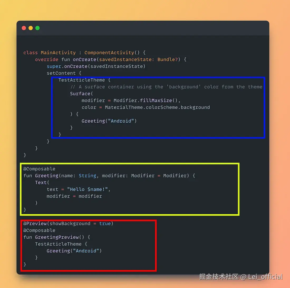 在 Jetpack Compose 中,构建 UI 就像定义函数一样简单。您只需在函数上添加@Composable注释,就可以了!您已进入 UI 创建的世界。