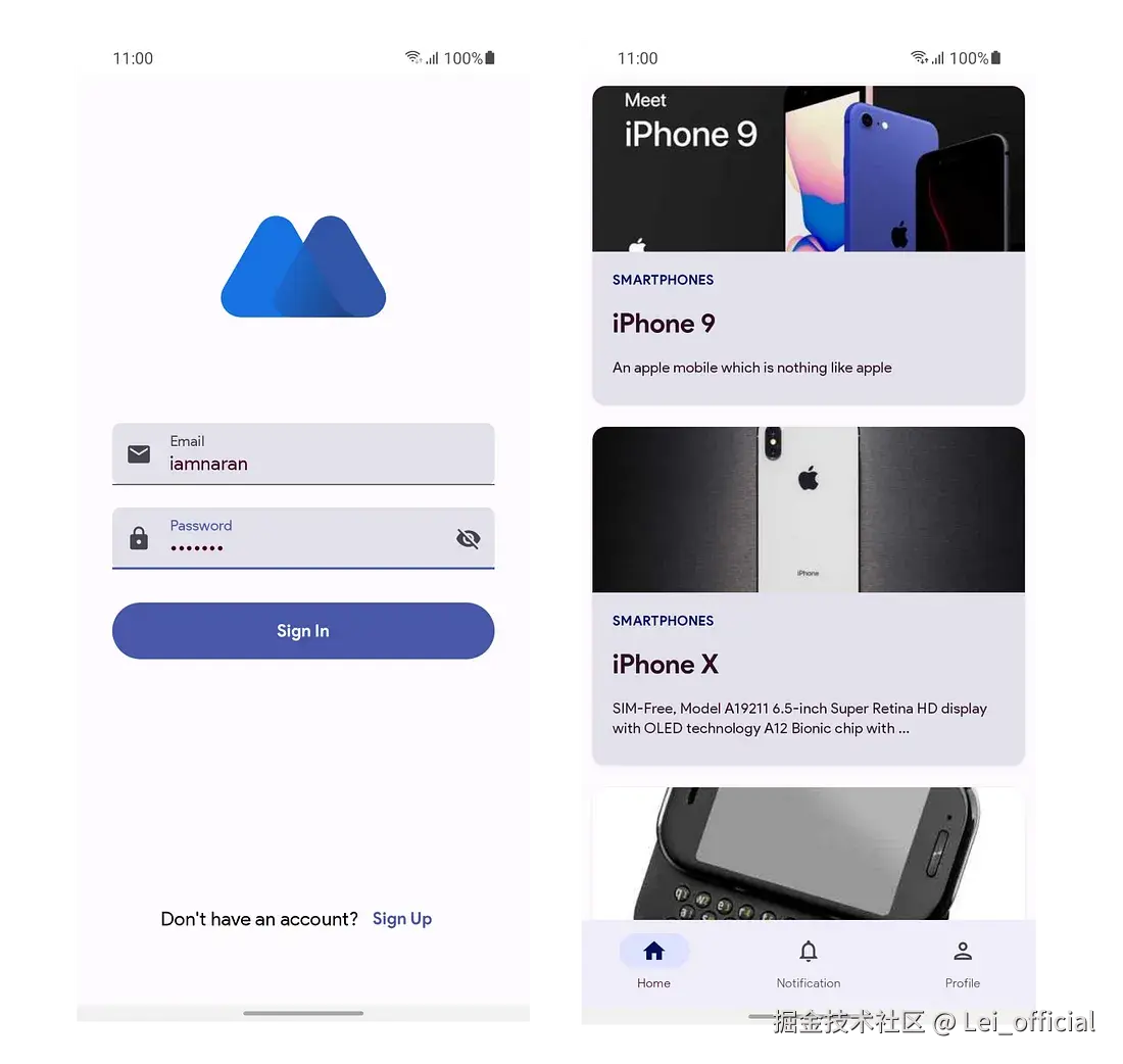 本次要实现的APP效果图,包含登录页面和信息流主页。