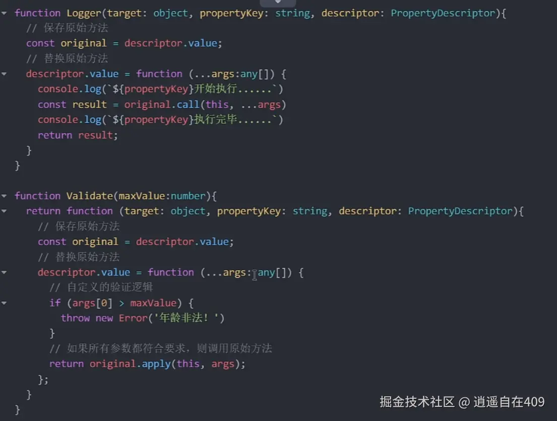 - 定义一个Logger方法装饰器,用于在方法执行前和执行后,均追加一些额外逻辑。