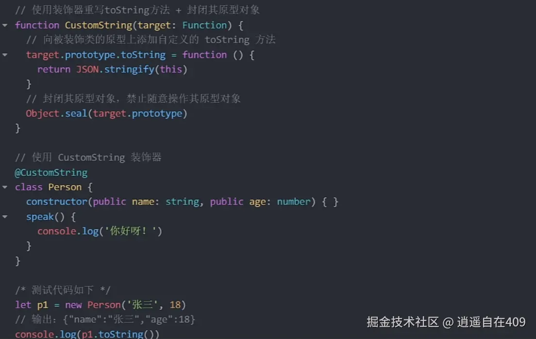 需求:定义一个装饰器,实现Person实例调用toString时返回JSON.stringify的执行结果