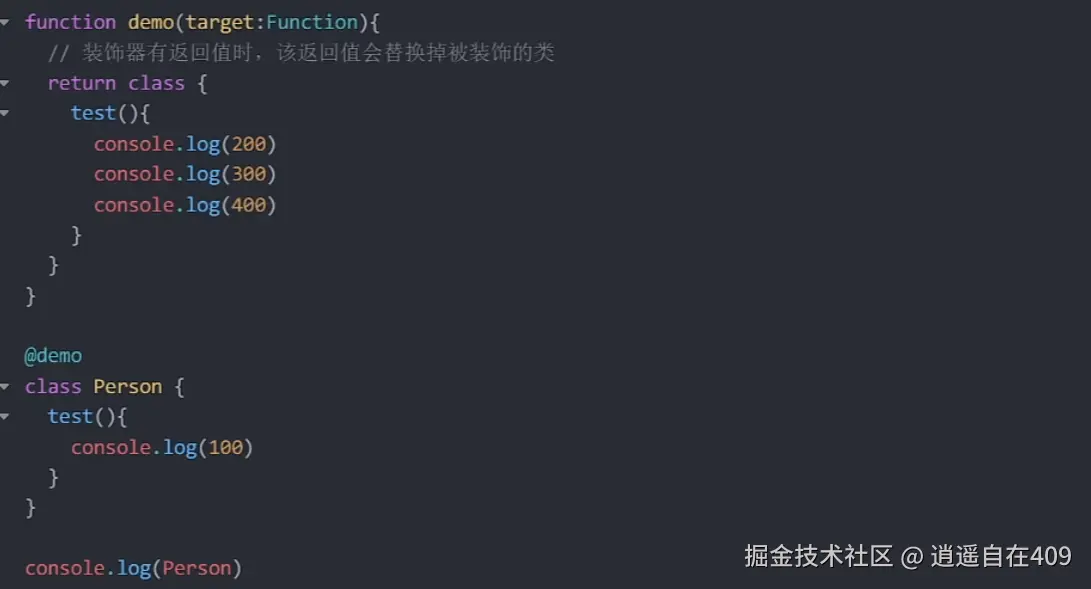 类装饰器无返回值:若类装饰器无返回值或返回undefined,那被装饰的类不会被替换。
