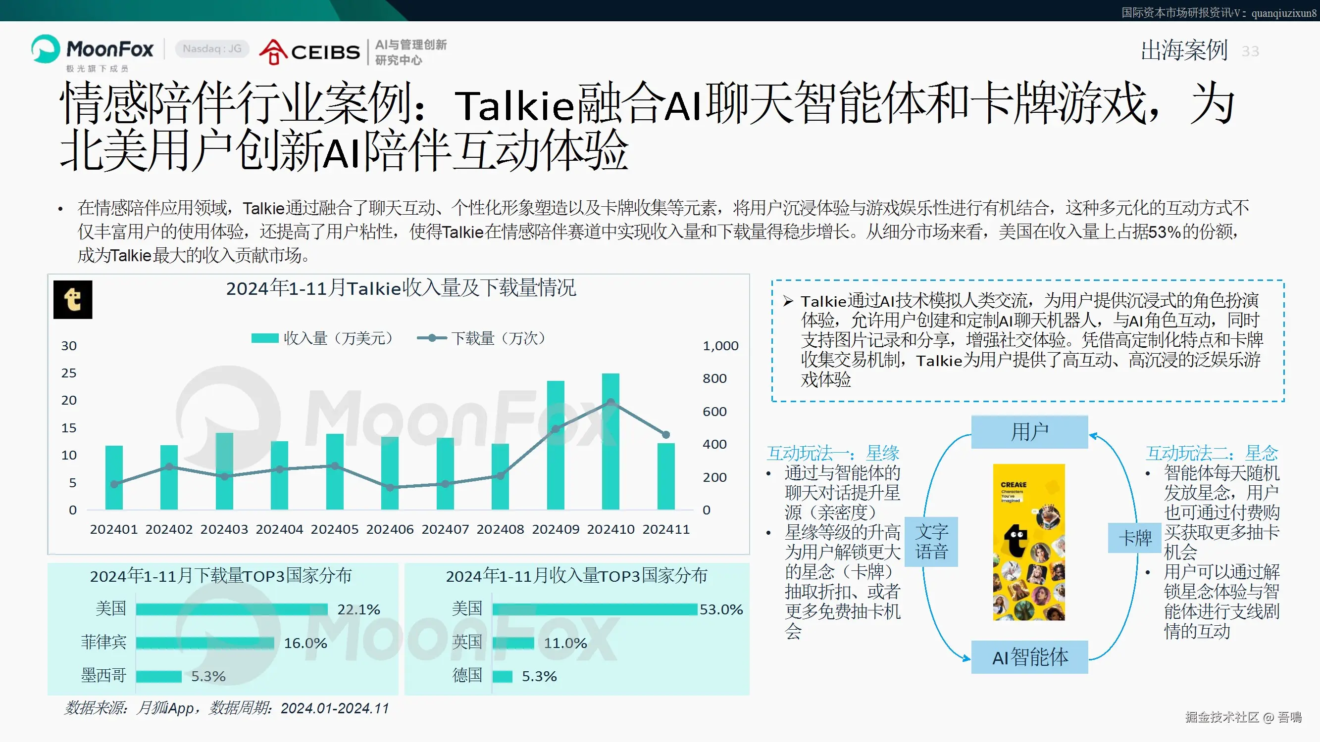 - Talkie(情感陪伴):融合卡牌游戏,北美用户付费意愿高。