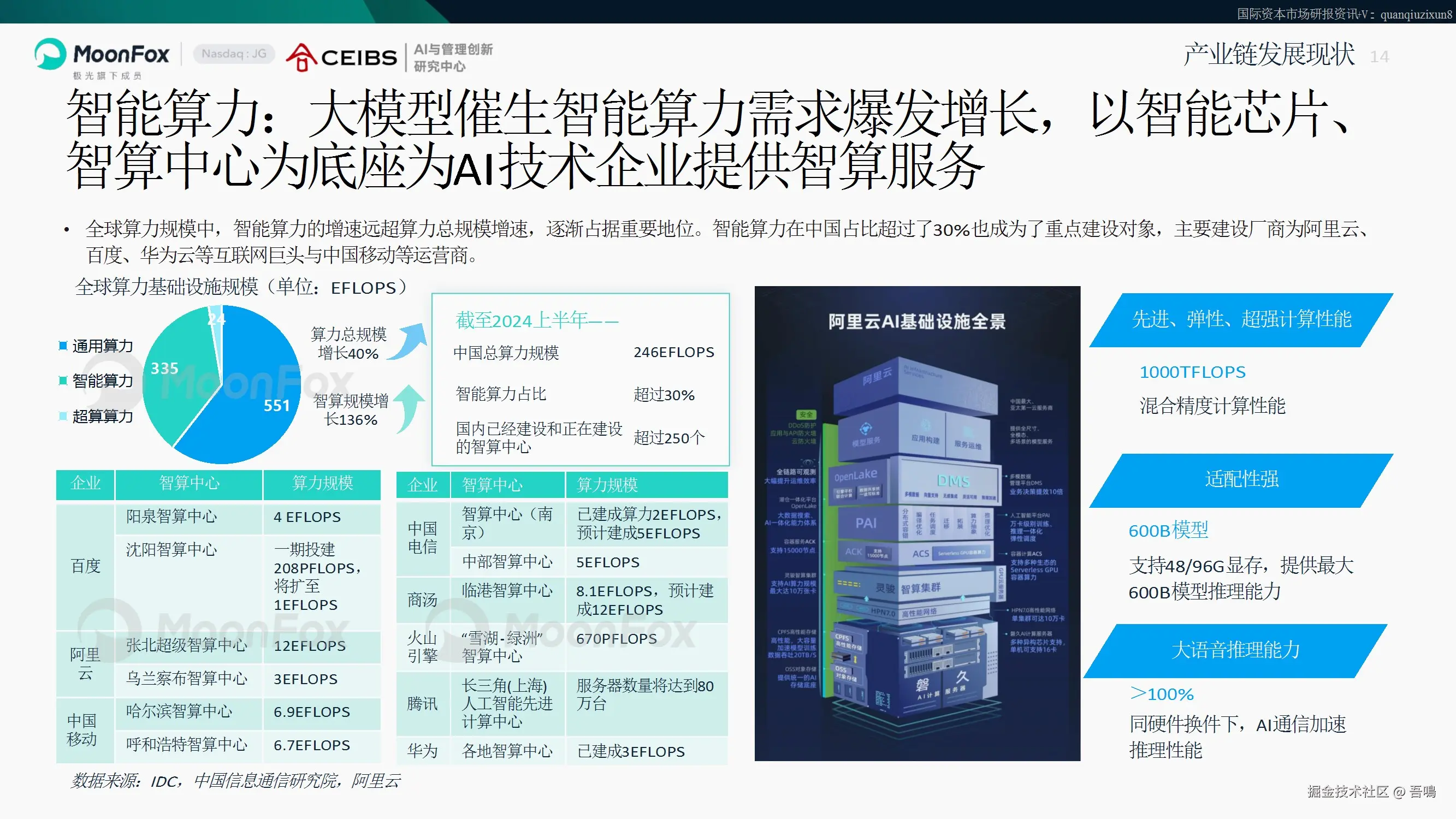 - 智能算力:中国智能算力占比超30%,阿里、华为等主导智算中心建设。