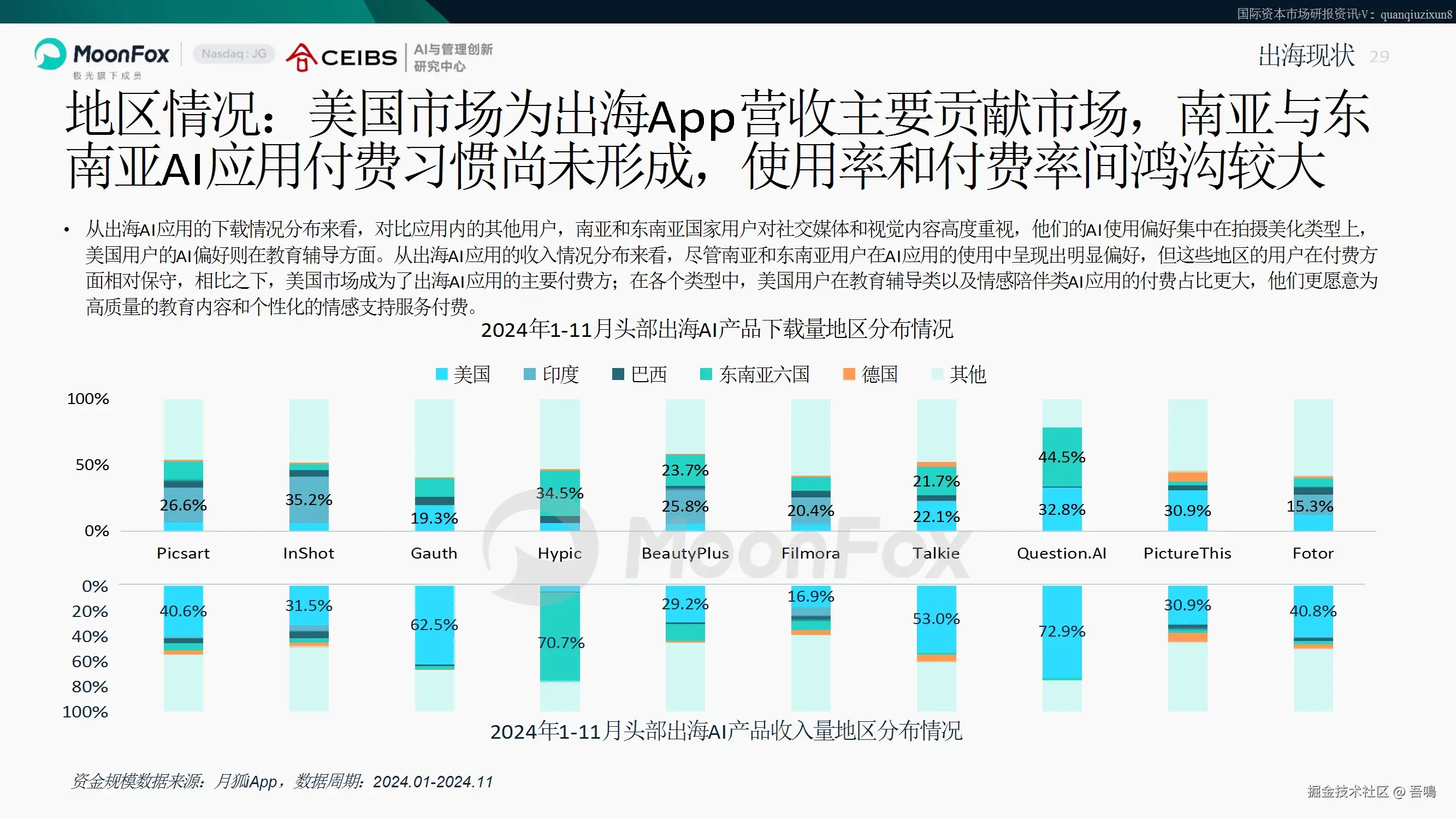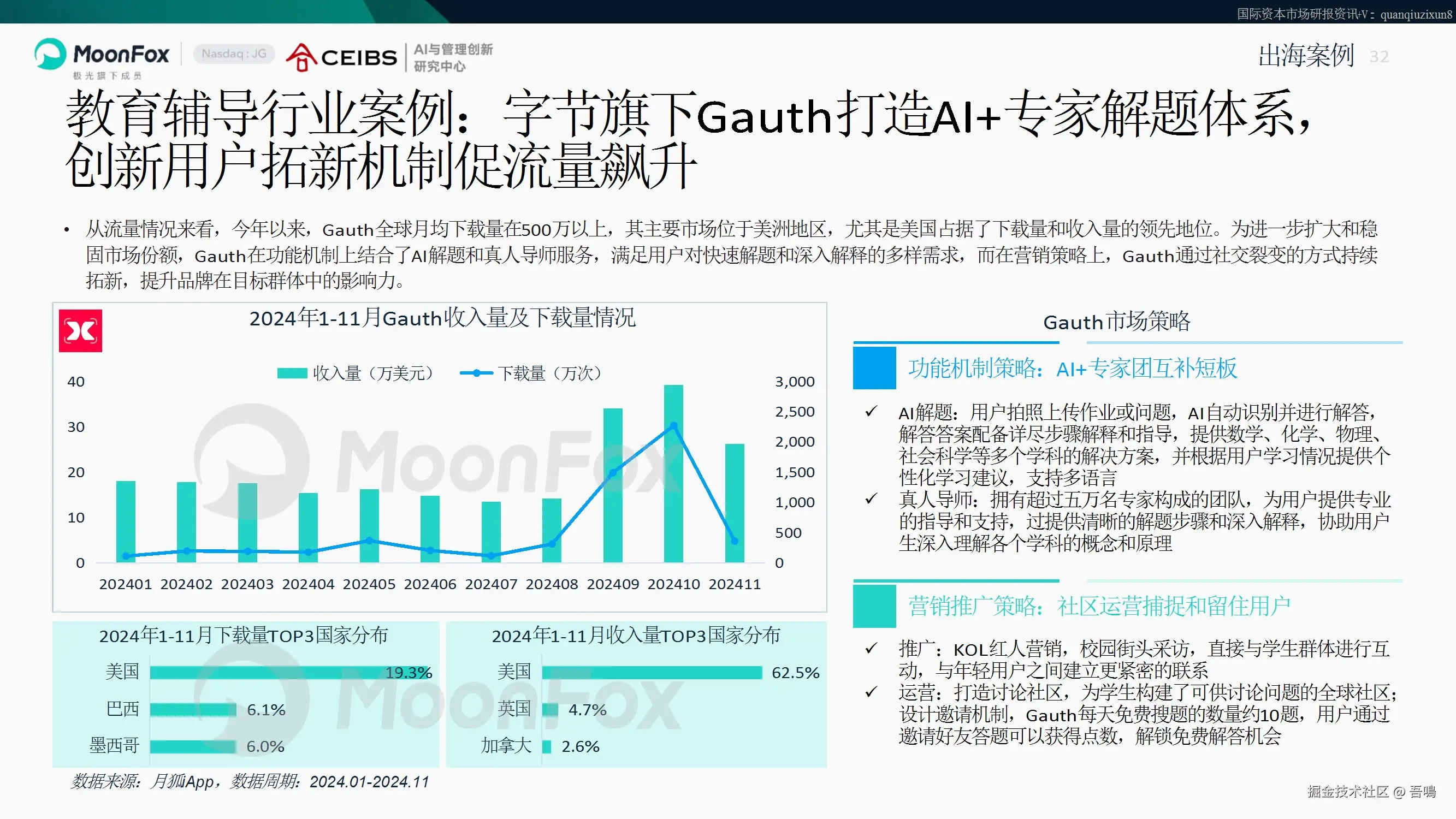 - Gauth(教育辅导):AI+真人导师模式,美国市场占收入主导。