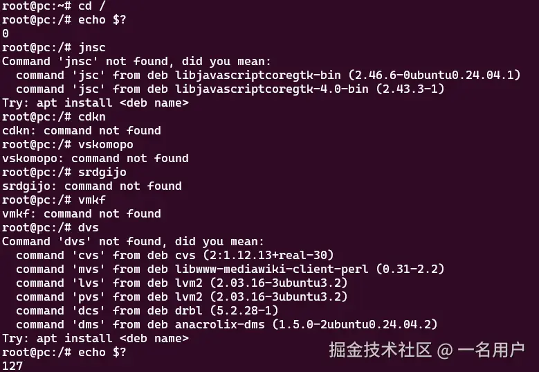 举个例子,如果你用cd /转到了系统的根目录,那么,此时你用echo输出一下$?的值,就会输出一个0。而如果你随便乱输,那么就会报错,此时你再用echo输出一下$?的值,就会输出一个非0的值。就像下面这样。