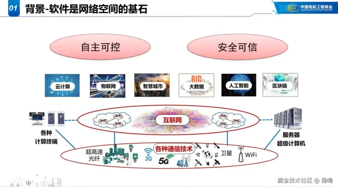 - 背景:阐述了软件作为网络空间的基石,当前面临自主可控和安全可信的双重挑战。自主可控方面,关键软件长期被国外垄断(如操作系统、工业设计软件),存在断供和知识产权风险(如Matlab断供事件);安全可信方面,软件漏洞、恶意代码频发(如SolarWinds攻击、WannaCry勒索病毒),闭源软件分析难度大,安全隐患深藏。