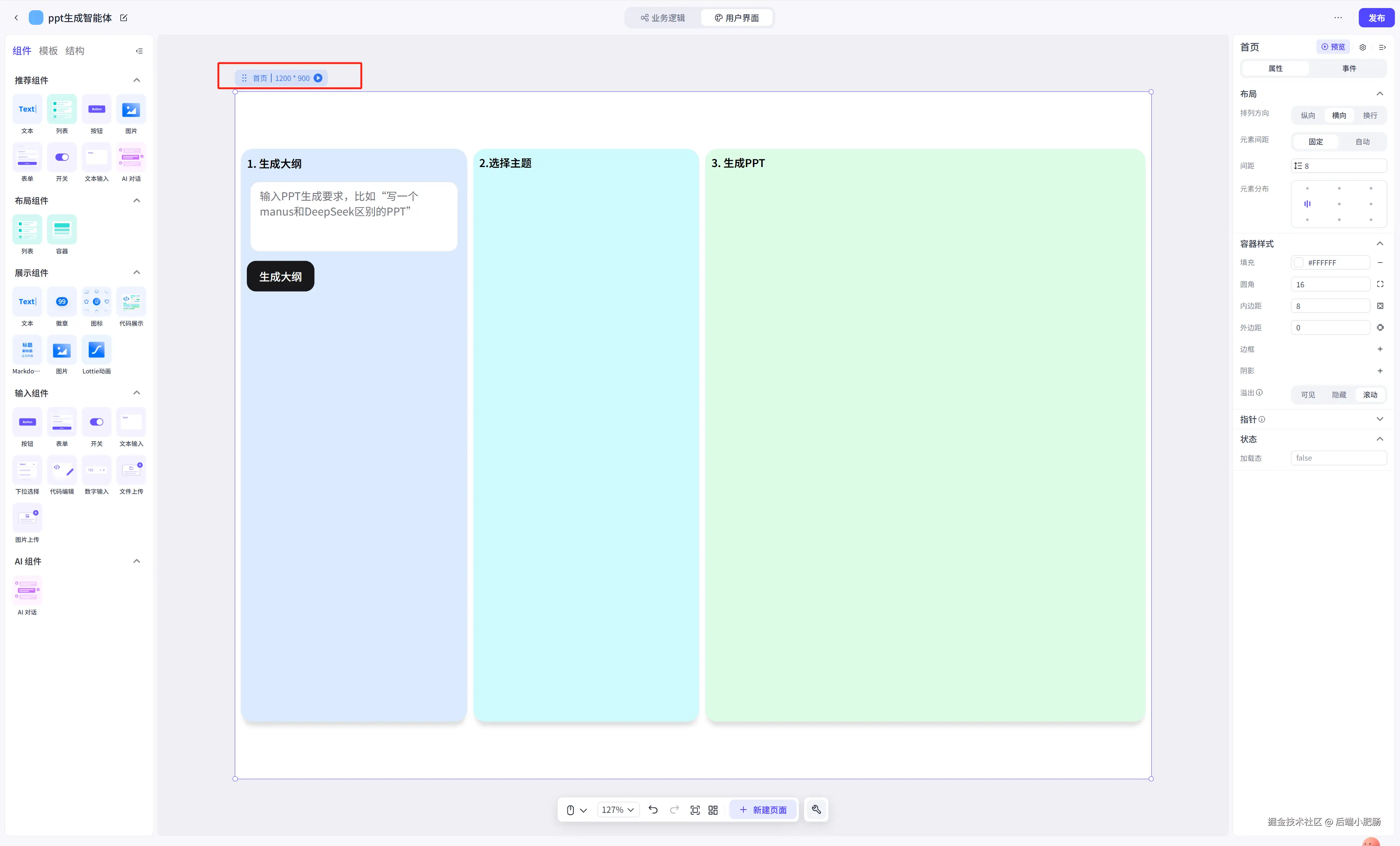神奇的事情发生了,他对我的提示词进行拆解以后,直接就开始制作PPT生成器小工具了: