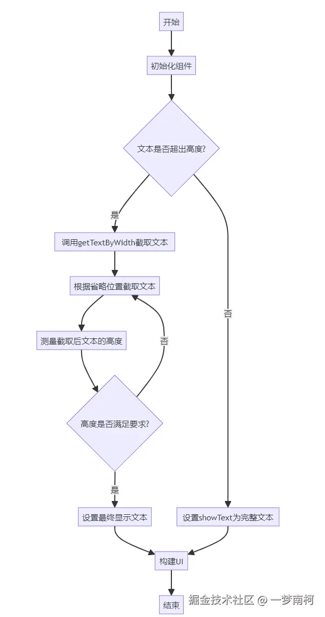 getTextByWidth方法,根据省略位置(start、middle、end)逐步截取文本。 - 测量截取后文本的高度:每次截取后重新测量高度,直到满足高度要求。